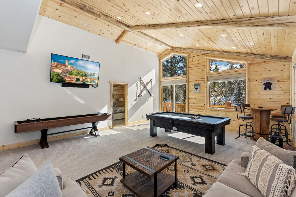 The mountains are a great place to go to spend some quality time with family. Whether you’re looking for a weekend getaway, a family vacation, or a great option for the holidays. No matter the season, you’ll find plenty of things to do together and also be surrounded by nature’s beauty. Find yourselves on some of Big Bear’s hiking trails, visit the Village, eat at some great restaurants, ski and snowboard down Bear Mountain or Snow Summit, and so much more. The first place to start though is finding the perfect Big Bear cabin for your family’s stay. Don’t worry, we’ve got you covered. Below are our 5 best big bear family cabins. Each of these homes offers game tables for endless family fun, great location options, a hot tub to relax in at the end of a long day exploring, and so much more. We also haven’t forgotten about your four-legged furry family members, each of these homes are also pet-friendly.