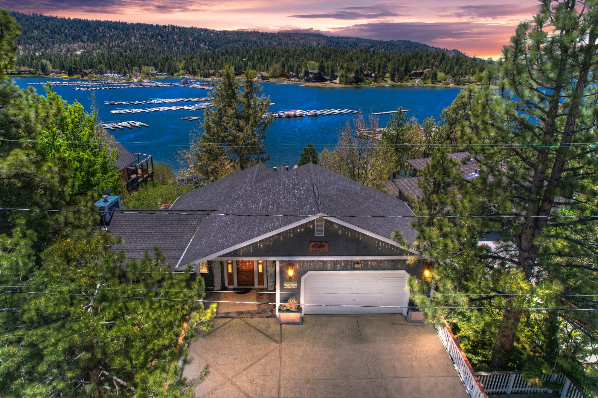 Above and Beyond features a private theater room with a state-of-the-art sound system and large screen, making every movie night a luxury experience. This spacious multi-level retreat pairs modern design with lake views and endless amenities for an unforgettable Big Bear stay.