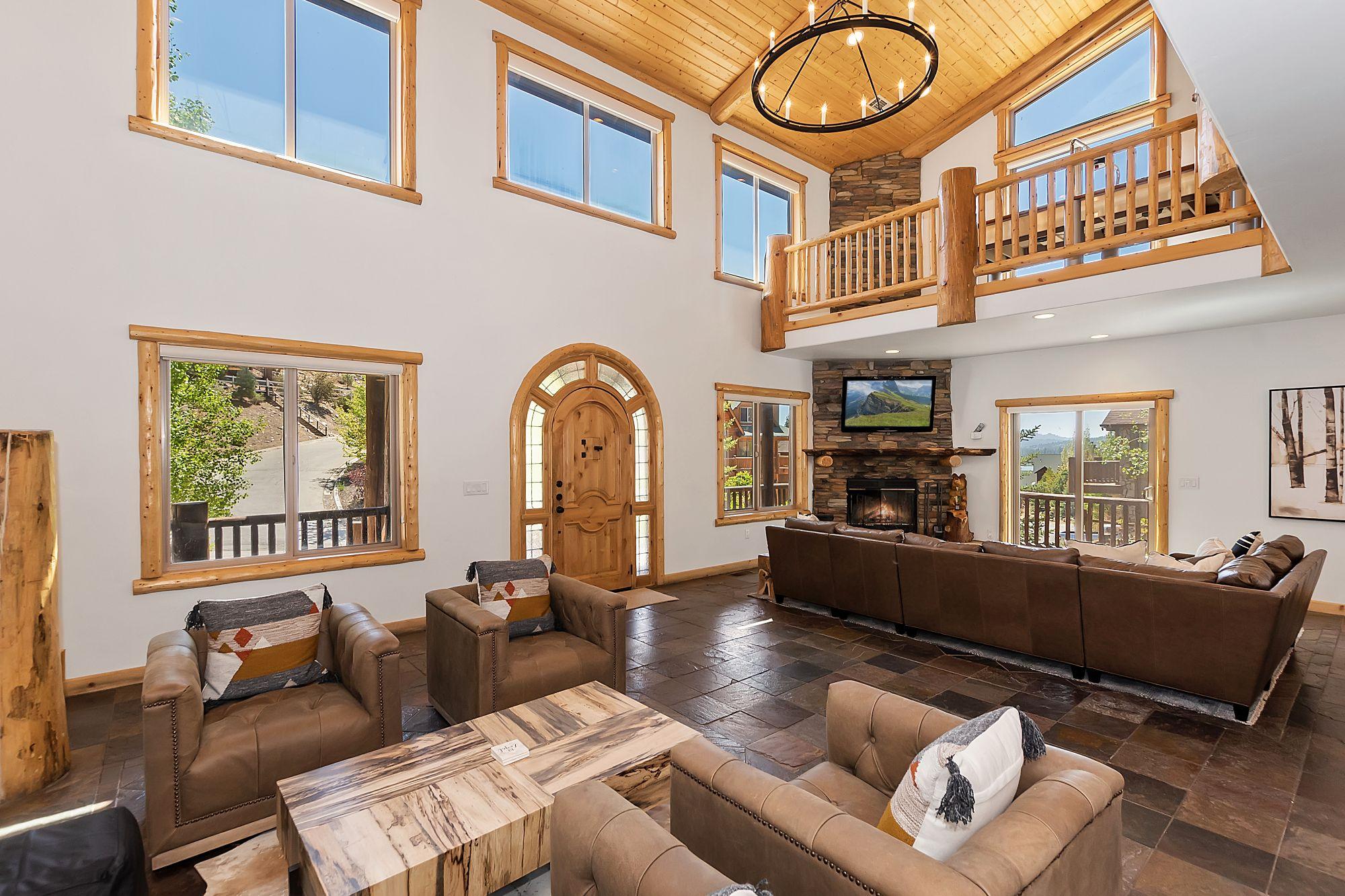 Wolf Creek Luxury Estate offers a private theater room with an 86″ TV and theater-style seating, making every night a blockbuster experience. This expansive estate blends mountain elegance with high-end entertainment just steps from Bear Mountain Ski Resort.