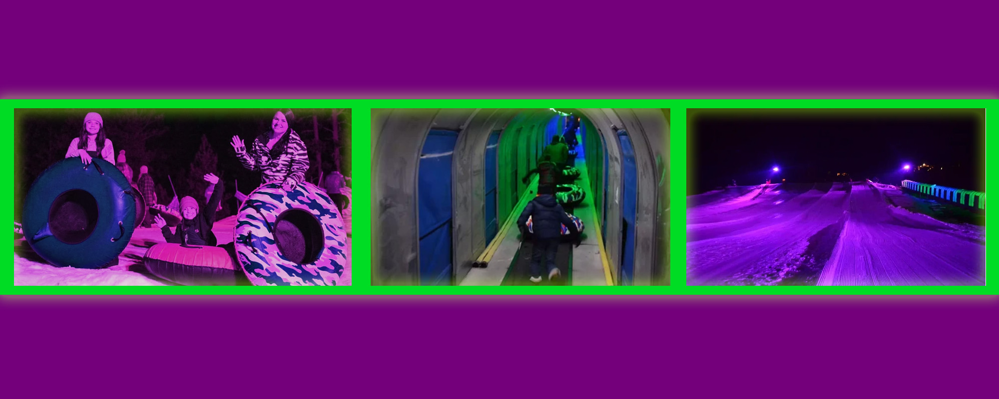- Unique nighttime experience – Bright LED and blacklight effects turn the snow tubing hill into a glowing, colorful winter playground.