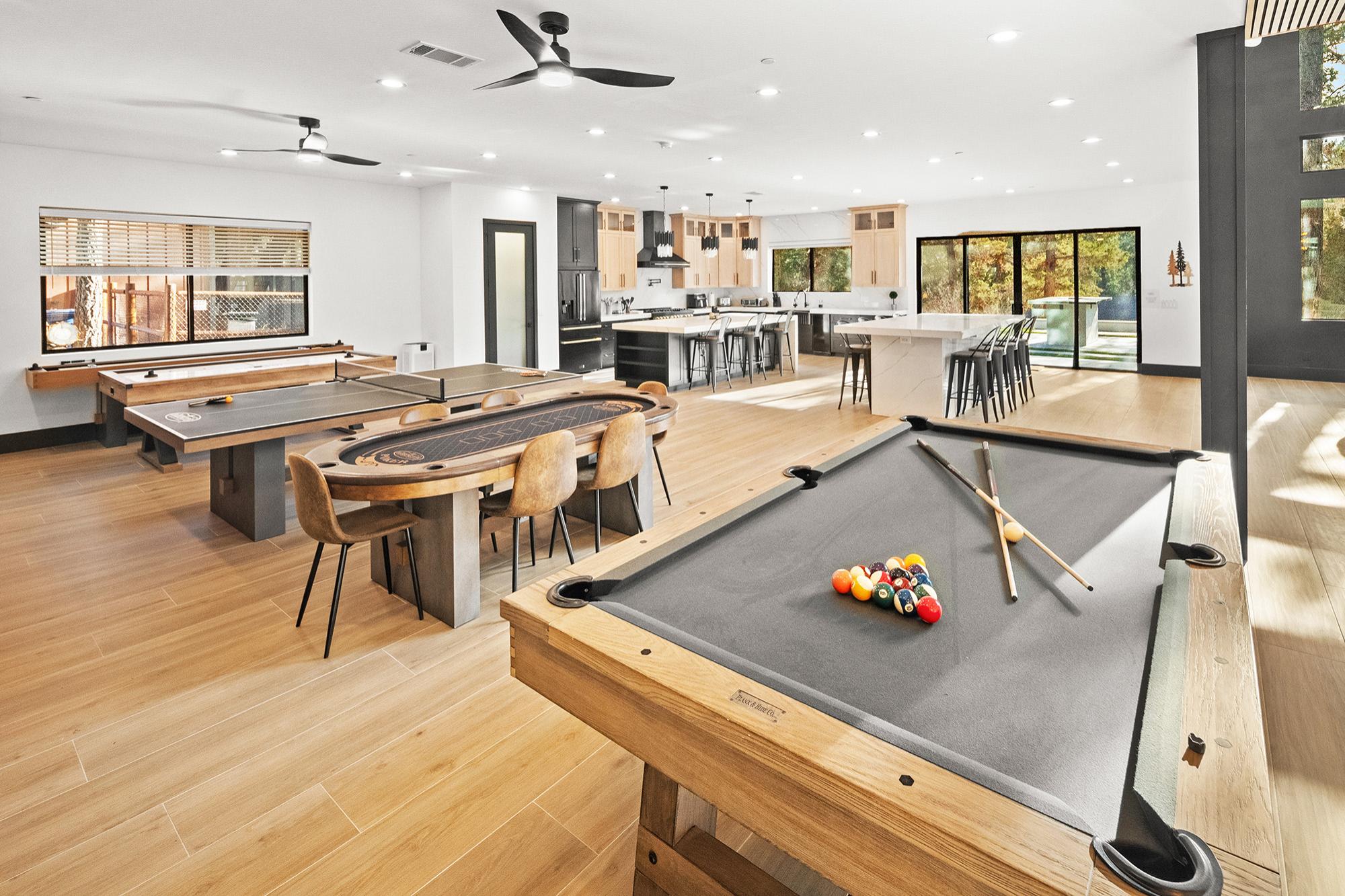 Answer: If you’re planning a trip with a big group and want a place that has plenty of space and things to do, The Getaway Club checks all the boxes. It has 7 bedrooms, a full game room with everything from pool to ping pong, and even a private theater with real reclining seats. It feels more like a private lodge than a rental—and it makes hanging out just as fun as heading into town.